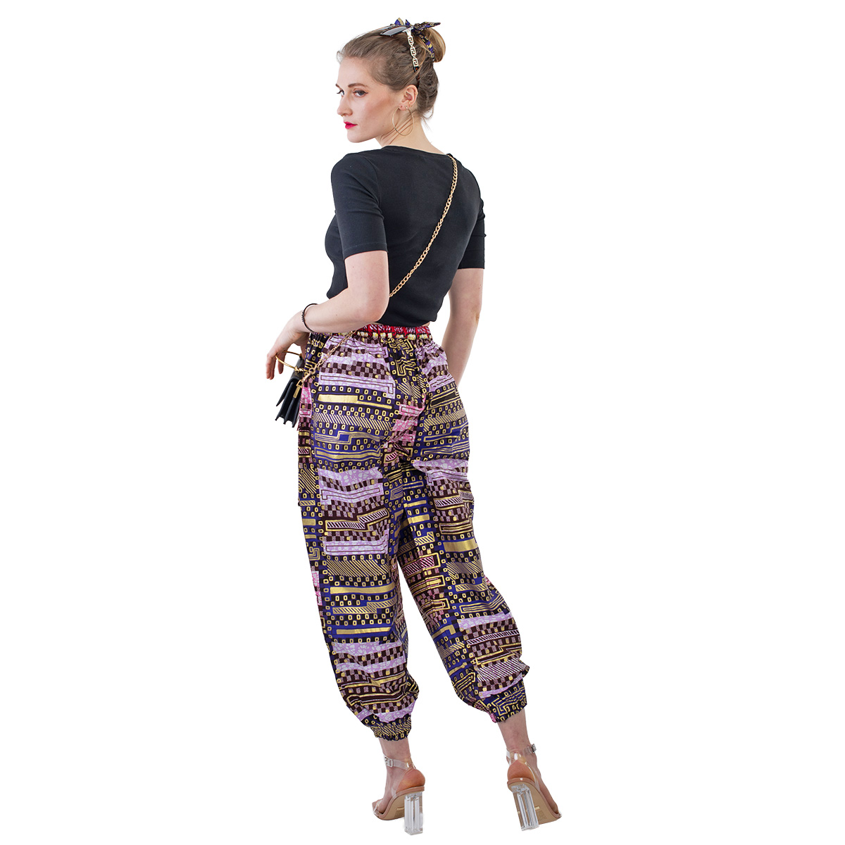 - Handcrafted from premium Ankara fabric with metallic accents